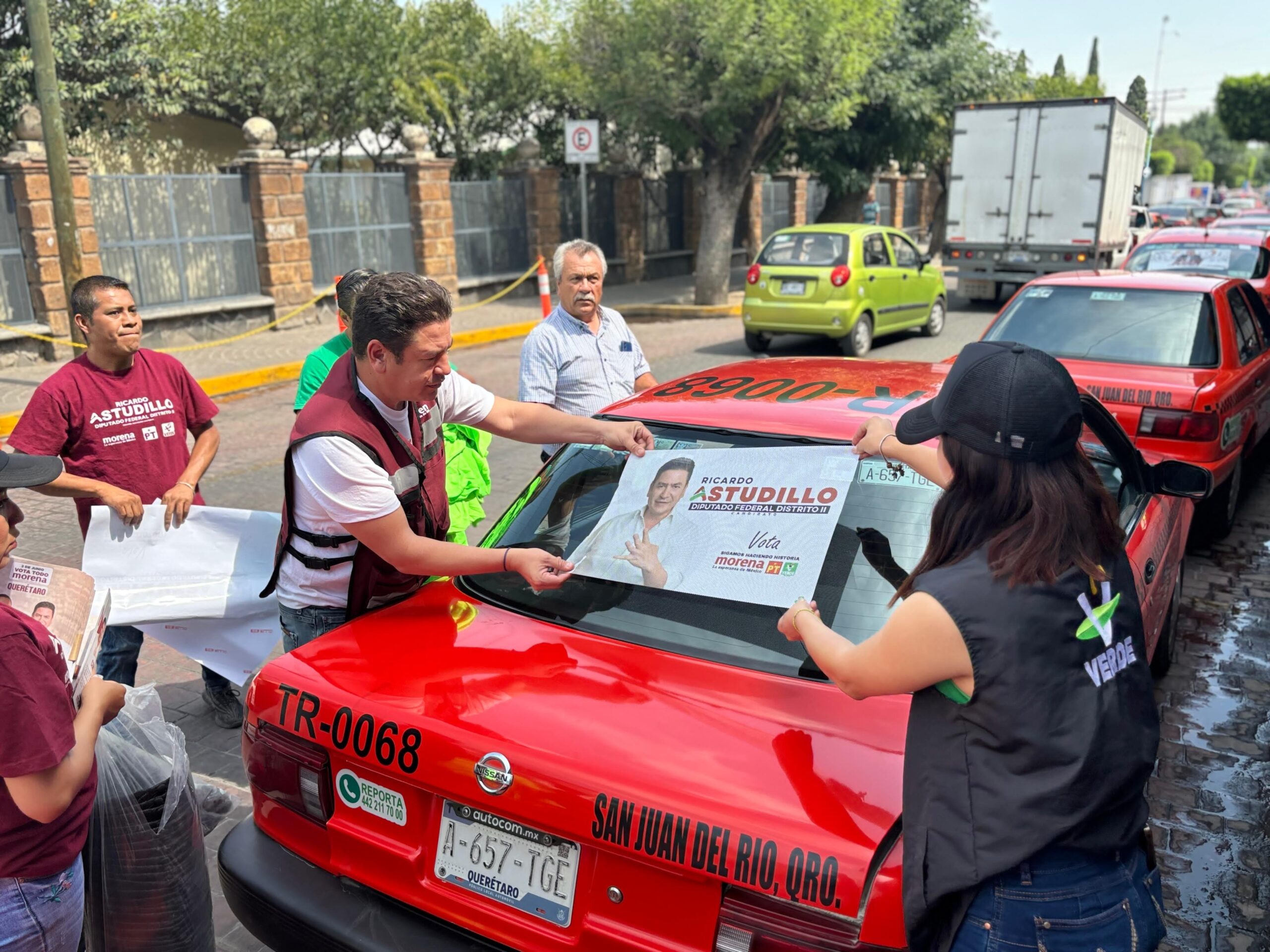 El candidato al II Distrito Federal por la Coalición “Sigamos Haciendo Historia” compuesta por Morena, PT y Partido Verde, Ricardo Astudillo Suárez, luego de recorrer el Mercado Reforma, en San Juan del Río, refrendó su compromiso con los operadores de unidades de taxis así como con las mujeres emprendedoras, comerciantes y locatarios de este municipio.