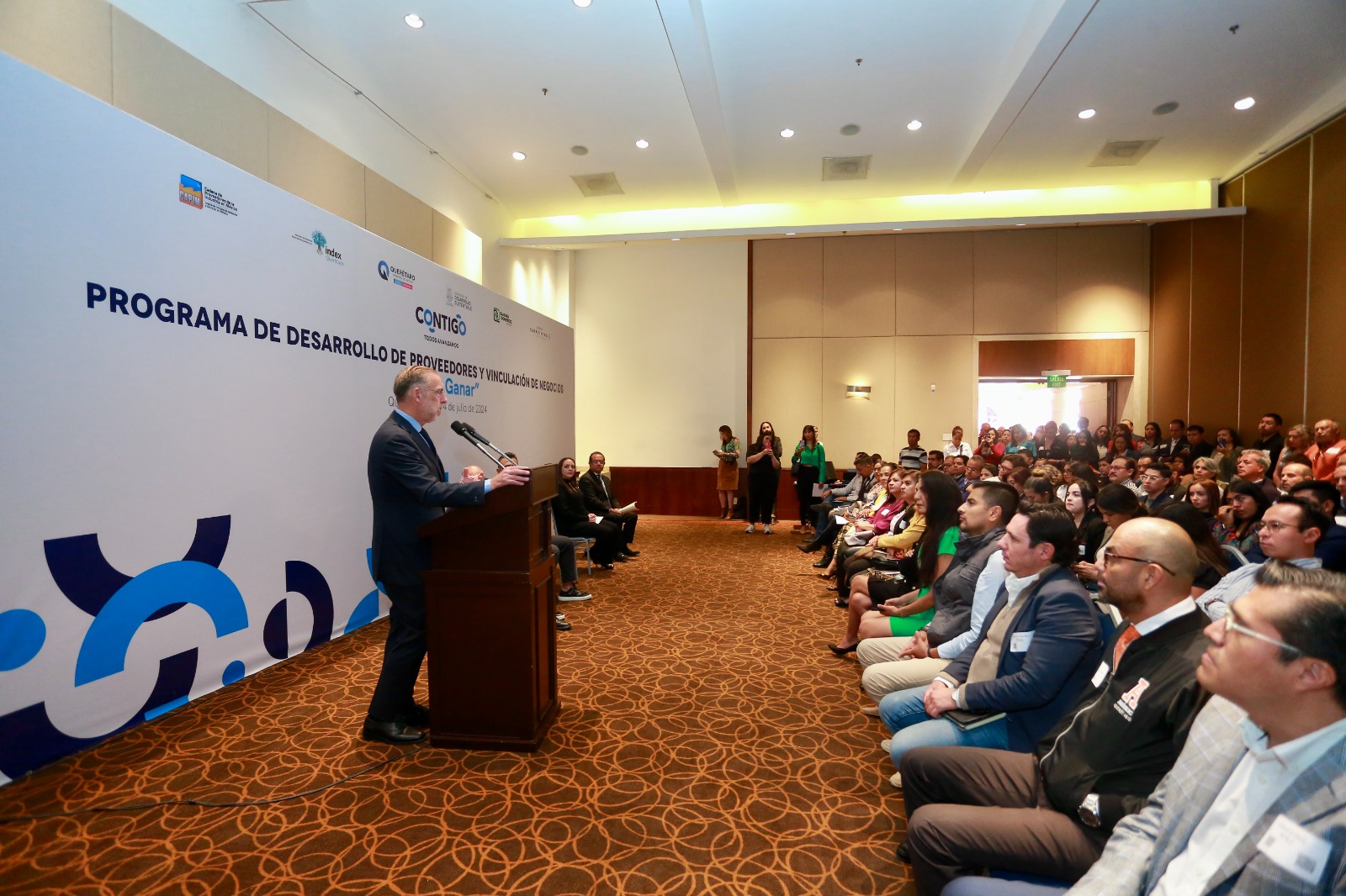 El titular de la Secretaría de Desarrollo Sustentable (SEDESU), Marco Antonio Del Prete Tercero, inauguró la segunda edición del B2B “Programa de Desarrollo de Proveedores y Vinculación de Negocios: Ganar-Ganar”, evento que congrega a 31 compradores y 166 proveedores en un solo espacio para concretar citas que detonen la integración de las Micro, Pequeñas y Medianas Empresas (MiPyMEs) locales a grandes cadenas de suministro.