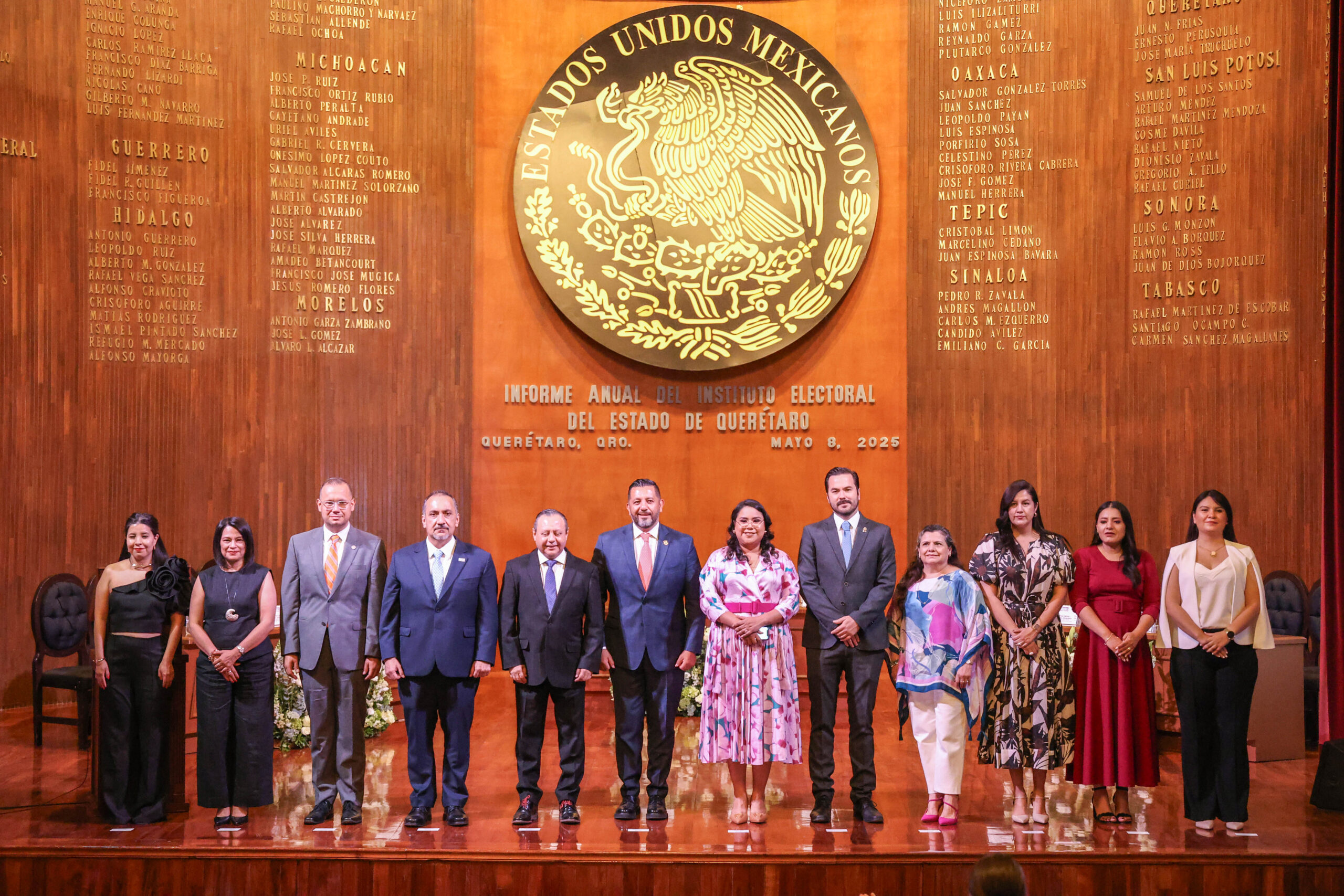 Durante la ceremonia, que se llevó a cabo en el Teatro de la República, la Consejera Presidenta reconoció que las y los queretanos creen en la democracia, ya que en el estado se pueden ejercer los derechos político-electorales siempre con reglas claras, certeza y respeto; derechos que dijo, protege el IEEQ, desde donde indicó que continuarán redoblando esfuerzos para seguir construyendo, junto con la gente, un instituto firme, imparcial y transparente, defensor del voto libre y en paz.