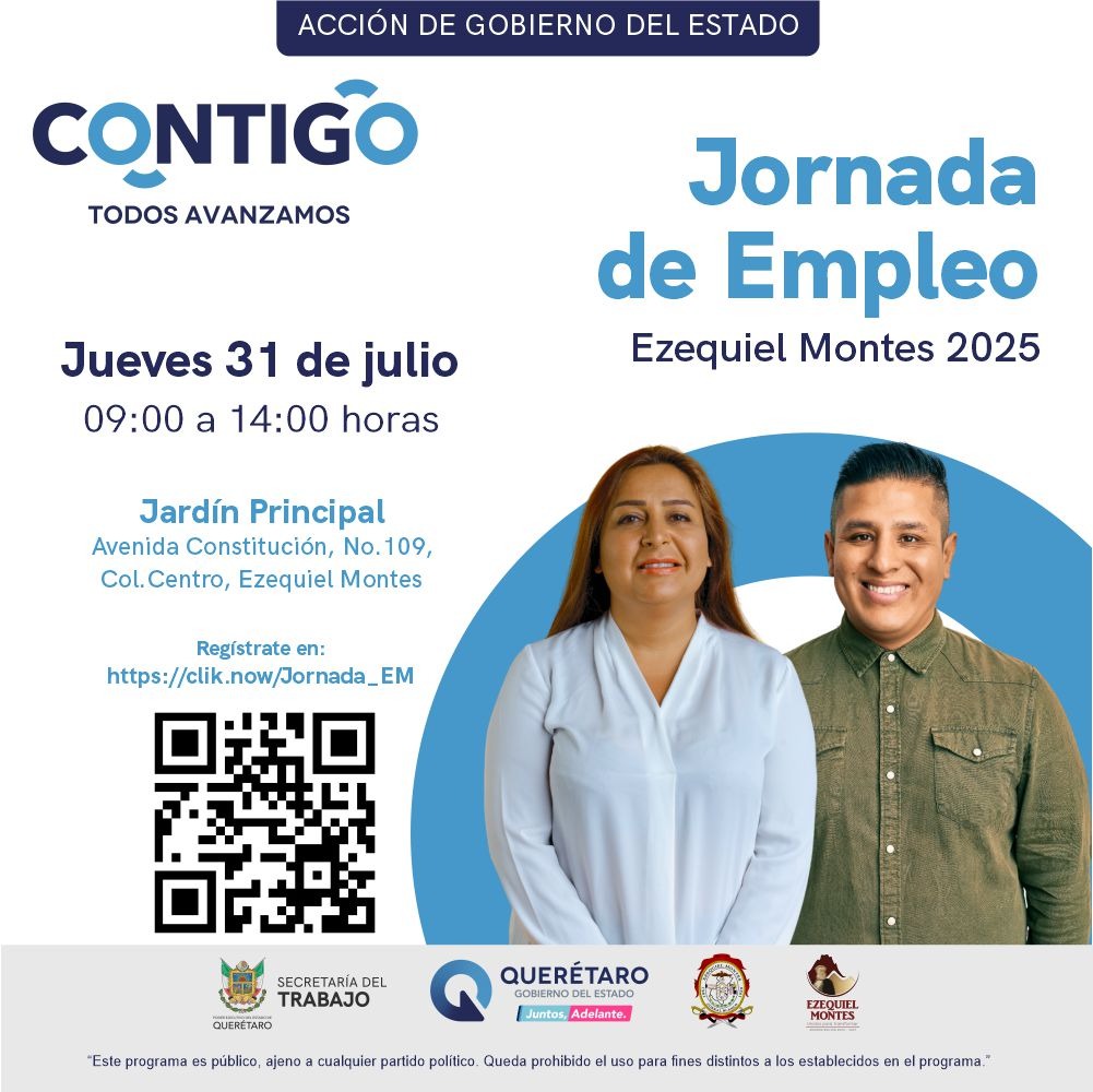 La Secretaría del Trabajo promoverá más de 700 vacantes en el municipio de Ezequiel Montes, en sinergia con al menos 19 centros de trabajo de la región de los sectores comercial, industrial y de servicios, el próximo 31 de julio en el Jardín Principal, de las 9:00 a las 14:00 horas.