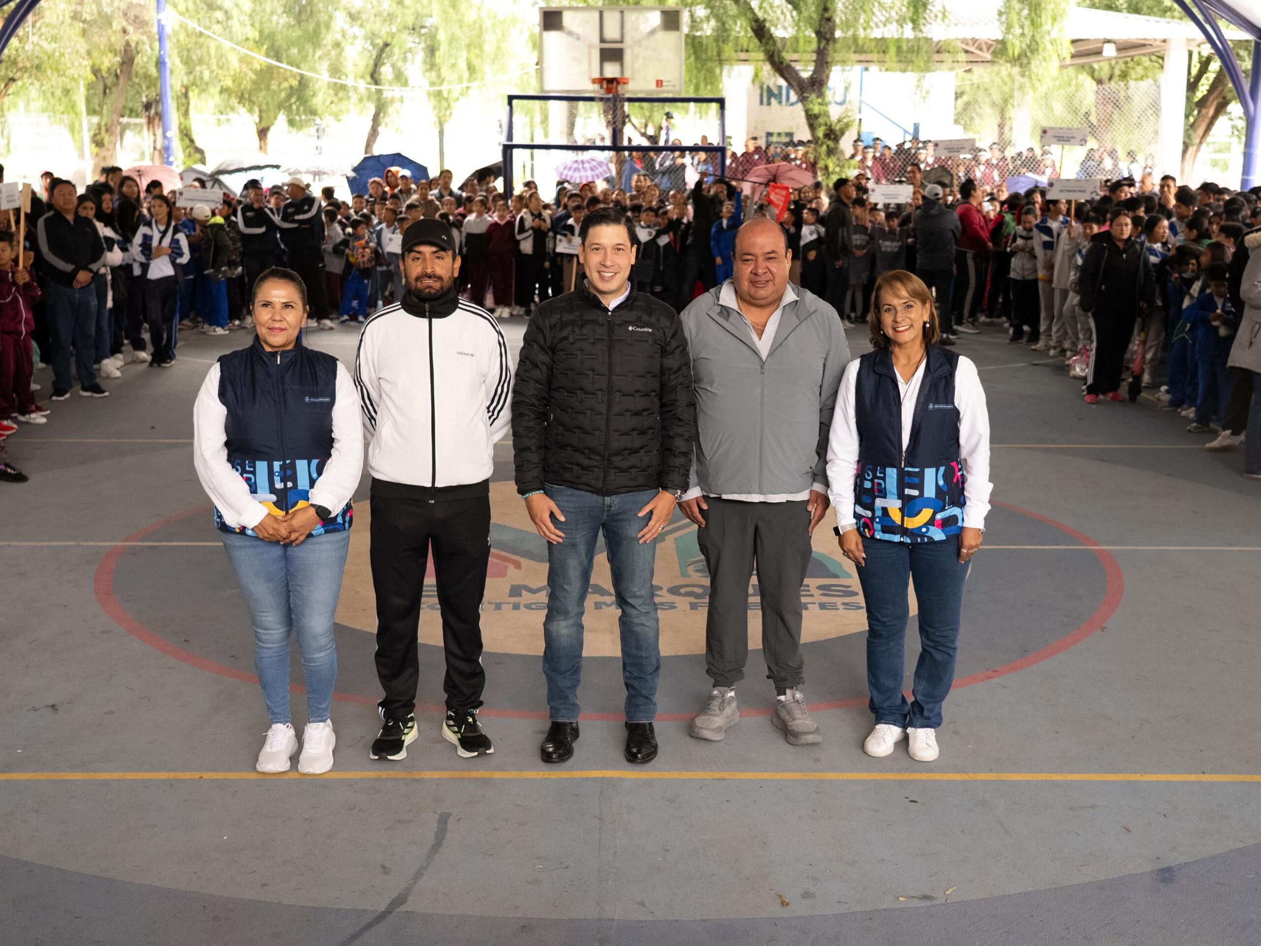 Además, para garantizar que niñas, niños y jóvenes cuenten con el material necesario para la práctica deportiva, durante el evento de inauguración se realizó la entrega de kits deportivos de futbol y basquetbol a los equipos participantes. Cada kit incluye balones, conos, platos, bomba de aire, entre otros artículos que facilitarán sus entrenamientos dentro de las escuelas.