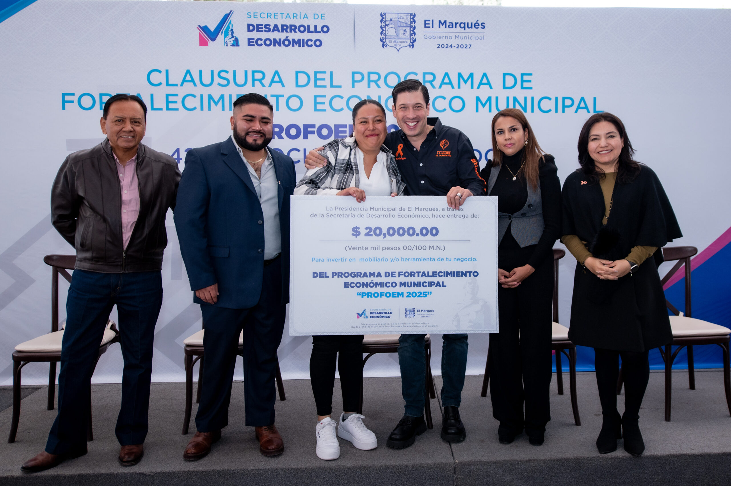 El presidente municipal de El Marqués, Rodrigo Monsalvo Castelán, realizó la clausura del Programa de Fortalecimiento Económico Municipal (PROFOEM), con el que se beneficiaron a 429 microempresarios y emprendedores con apoyos económicos, con el objetivo de fortalecer su producción y mejorar la economía local.