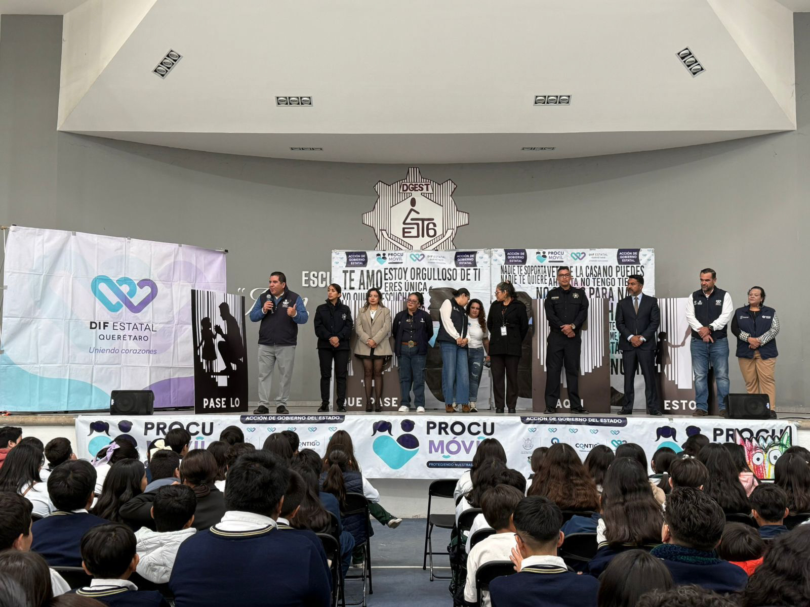 Con el objetivo de brindar herramientas positivas para los jóvenes e incentivar una cultura de paz social, el procurador de Protección de Niñas, Niños y Adolescentes, Manuel Hernández Rodríguez, encabezó el cierre del programa “Procuraduría Móvil 2025” que se realizó en la Escuela Secundaria Técnica No. 6 “Juan Antonio de Urrutia y Arana” ubicada en la zona industrial Benito Juárez del municipio de Querétaro.