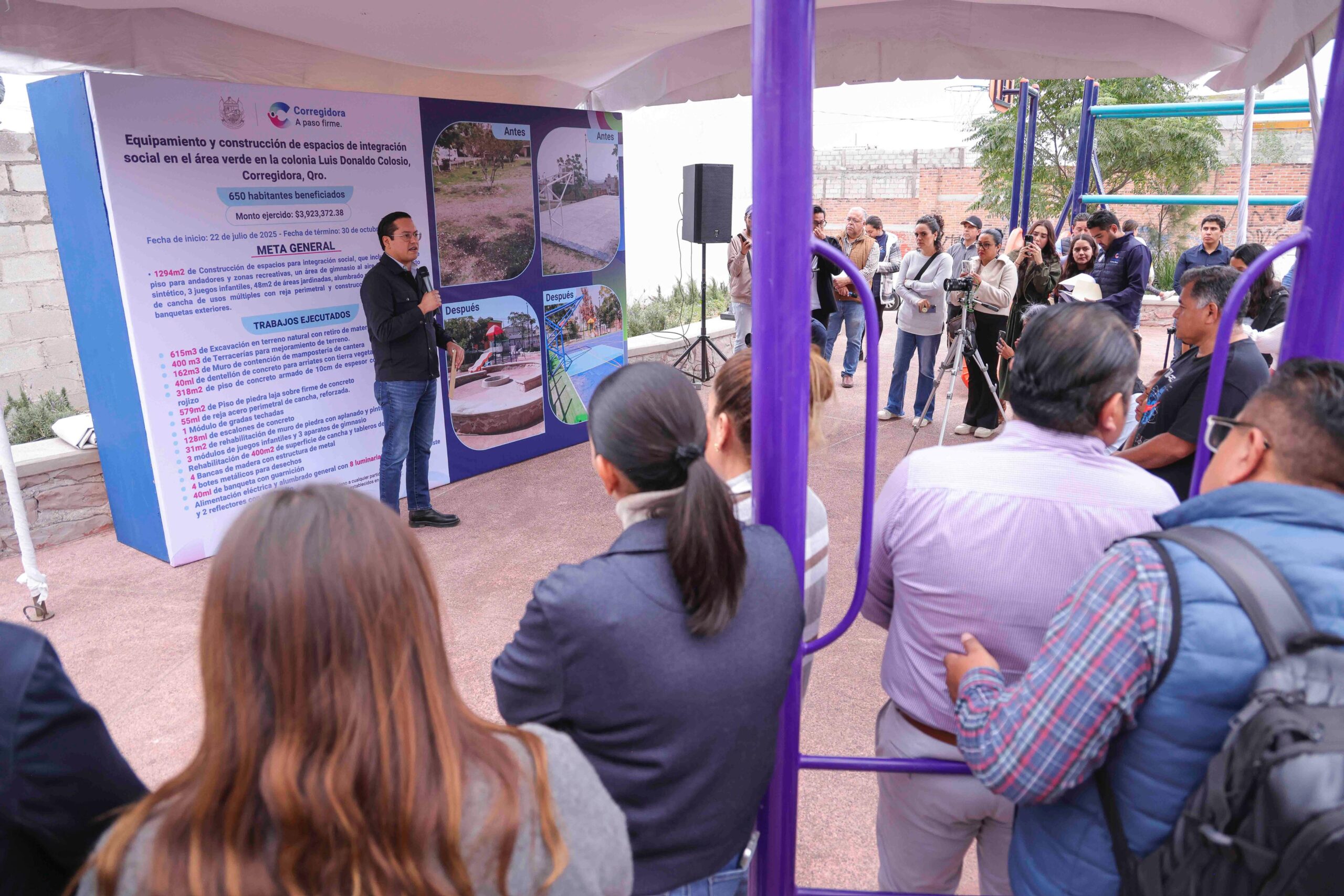 El presidente municipal de Corregidora, Chepe Guerrero, entregó la construcción del parque ubicado en la colonia Luis Donaldo Colosio, en La Negreta, obra que beneficia de manera directa a 650 habitantes de la zona, gracias a una inversión cercana a 4 millones de pesos.