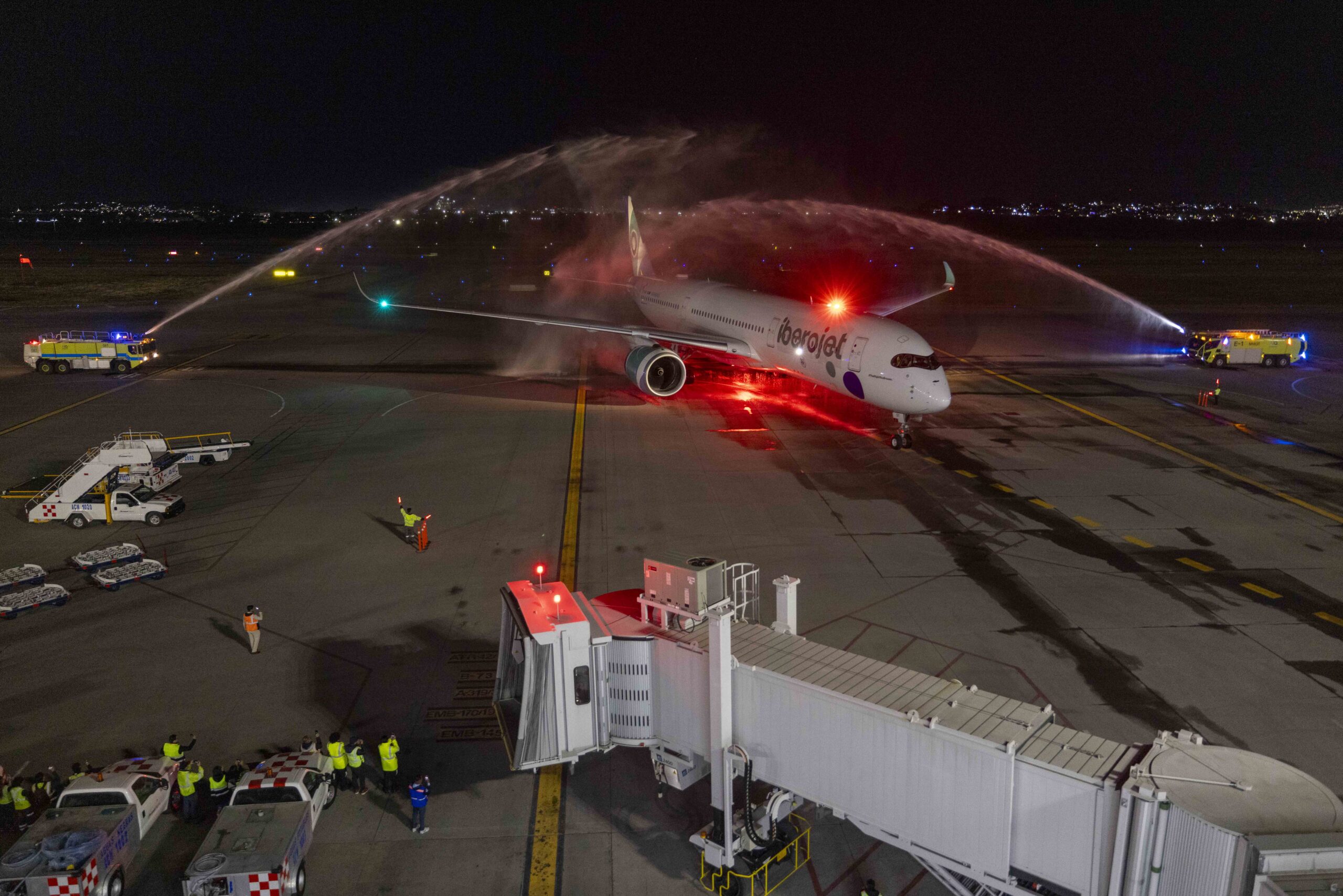 El gobernador, Mauricio Kuri González, acompañado por el embajador de España en México, Juan Duarte Cuadrado, encabezó en el Aeropuerto Intercontinental de Querétaro (AIQ) la ceremonia para recibir el primer vuelo directo procedente de Madrid, España, operado por la aerolínea Iberojet, marcando el inicio de una nueva ruta aérea internacional que fortalece la conectividad del estado con Europa.