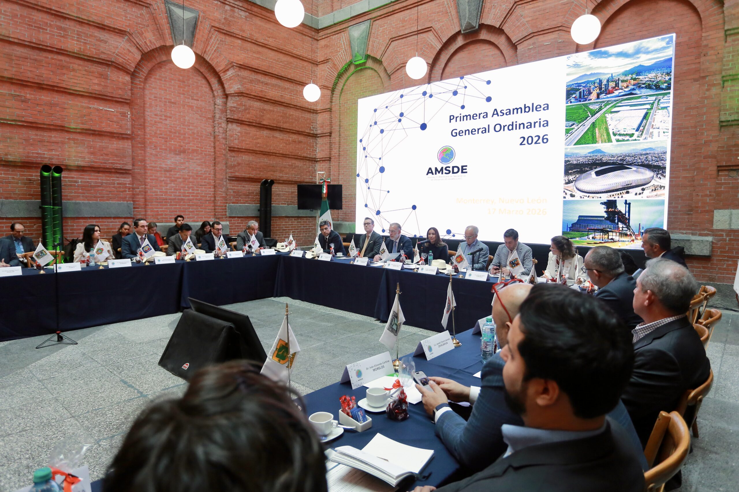 El presidente de la Asociación Mexicana de Secretarios de Desarrollo Económico (AMSDE) y titular de la Secretaría de Desarrollo Sustentable (SEDESU), Marco Antonio Del Prete Tercero, encabezó en Monterrey, Nuevo León, la primera asamblea ordinaria de la asociación, cuyo objetivo fue consolidar a México como destino prioritario para la atracción de inversiones estratégicas.