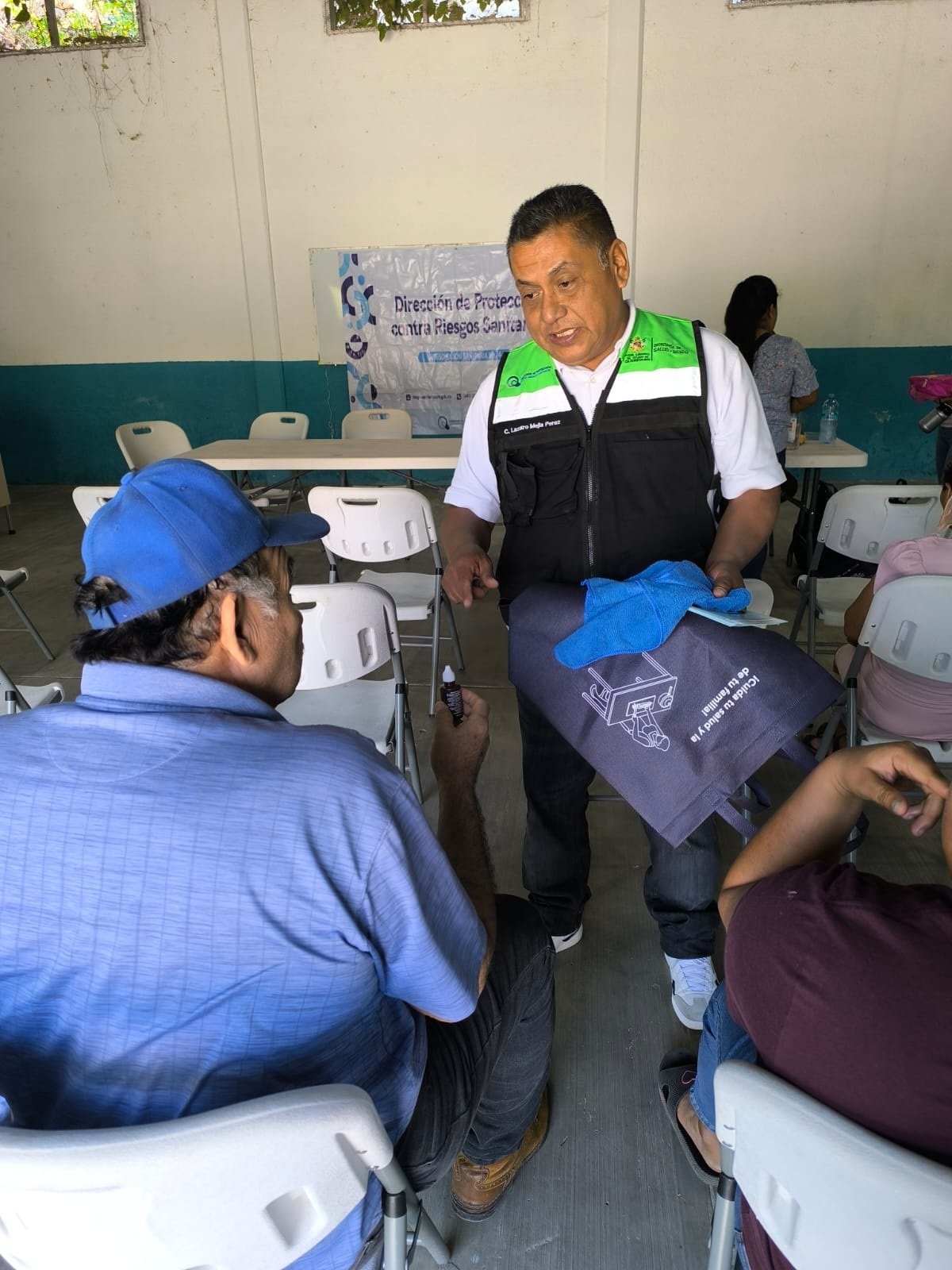 Asimismo, se brindó información clave para la identificación y prevención de enfermedades transmitidas por alimentos, reforzando la responsabilidad de las y los manejadores en garantizar productos seguros para el consumo. Como parte de las acciones de promoción de la salud, también se realizó la entrega de frascos de plata coloidal.
