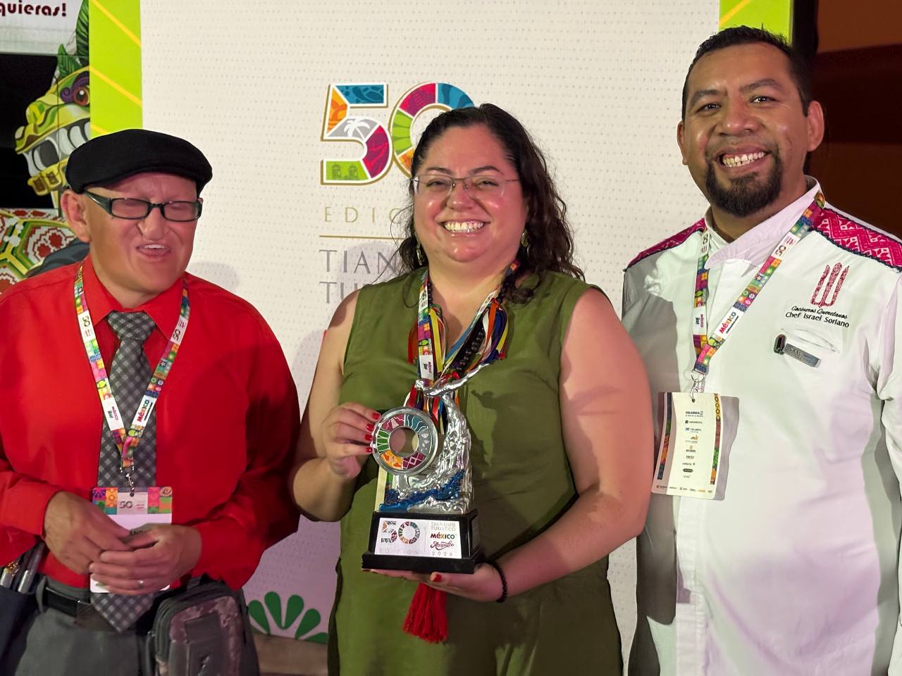 El proyecto gastronómico queretano «Sentidos Vivos», recibió el reconocimiento a la Innovación del Producto Turístico Mexicano en la categoría de Turismo Inclusivo, otorgado por el Gobierno Federal y la titular de la SECTUR, Josefina Rodríguez Zamora, durante la celebración del 50 aniversario del evento más importante para la industria en el país, en Acapulco, Guerrero.